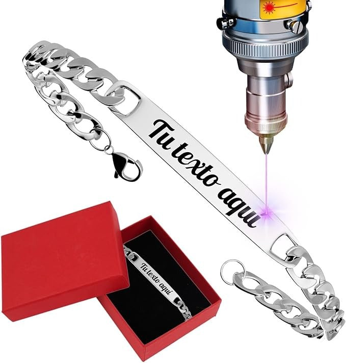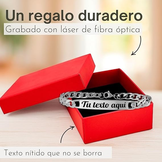 GRABADO LÁSER DURADERO: Personaliza tu pulsera esclava para hombre con nombre, fecha o mensaje especial. El grabado láser es duradero y garantiza que tu pulsera de acero inoxidable grabada conserve siempre su diseño único.